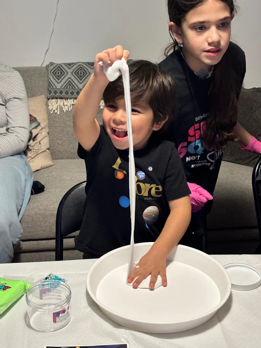 The slime party was an absolute hit! We still have people talking about it three weeks later. It was such a fun experience for everyone—kids from 3 to 14 were all fully engaged, playing, creating, and squishing their slime the entire time. Highly recommend for a party that keeps all ages entertained!