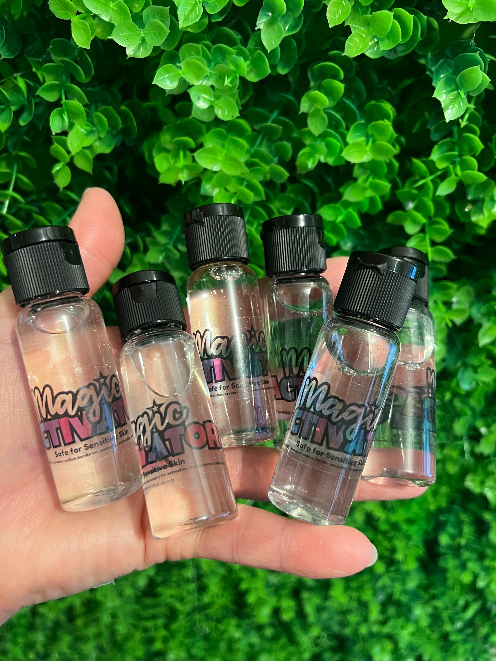 Our activator is skin safe and gentle on sensitive skin. Add a little at a time and mix it into any glue to make slime! Works to re-activate sticky slime too. Will work on all our slimes and most store bought slimes.